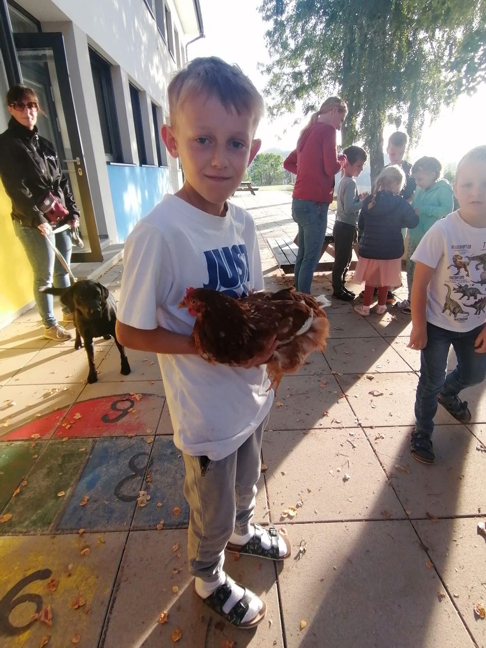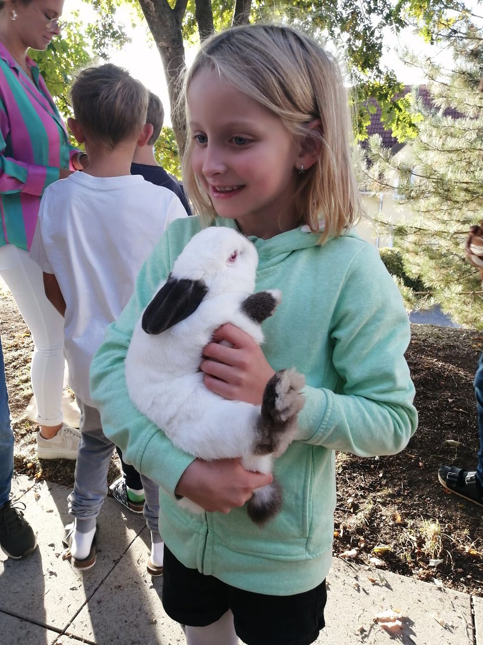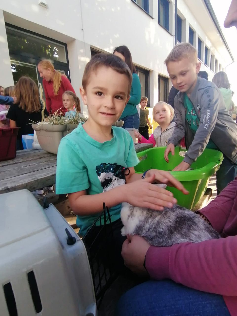 Am Donnerstag, den 5. Oktober, hatten wir anlässlich des gestrigen Welttierschutztages tierischen Besuch auf unserer Terrasse. Zwölf Eltern und Großeltern statteten uns mit Hunden, Schildkröten, Hasen, Meerschweinchen, Babykatzen und Hühnern einen Besuch ab. Besonders schön war es dabei für alle die Tiere zu streicheln, zu füttern und sogar zu halten.