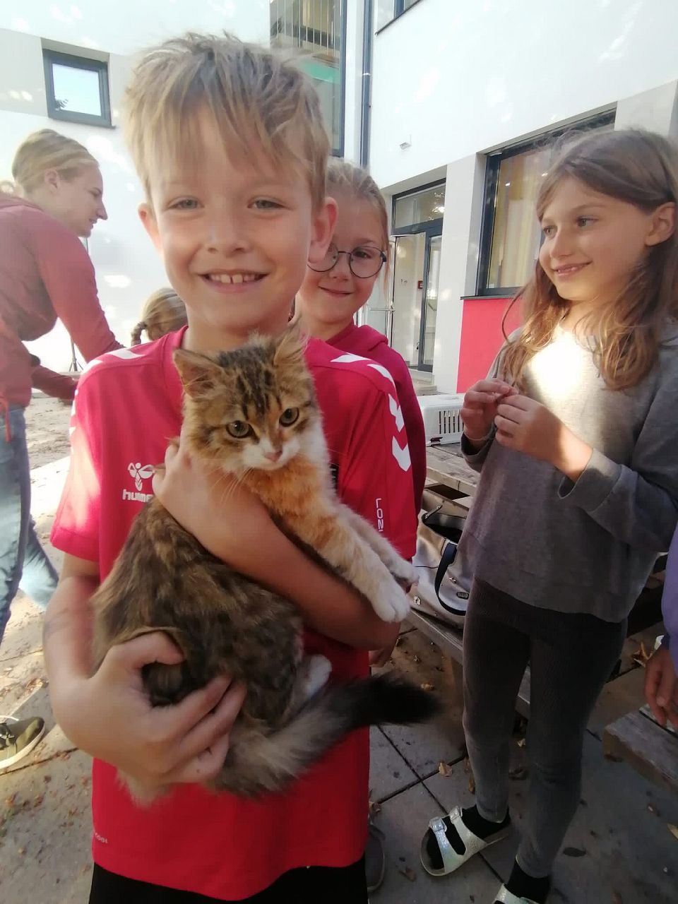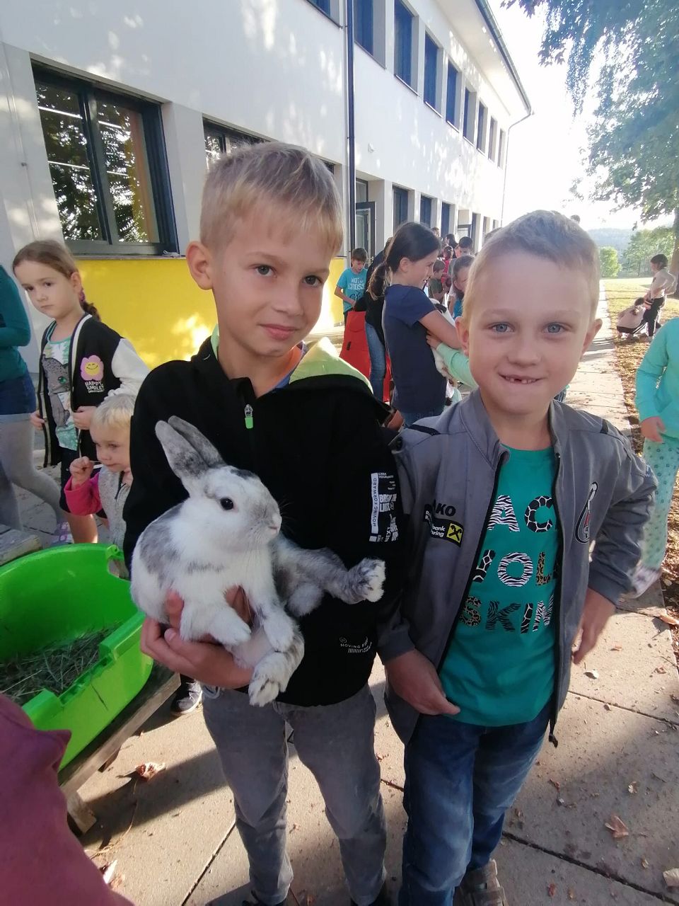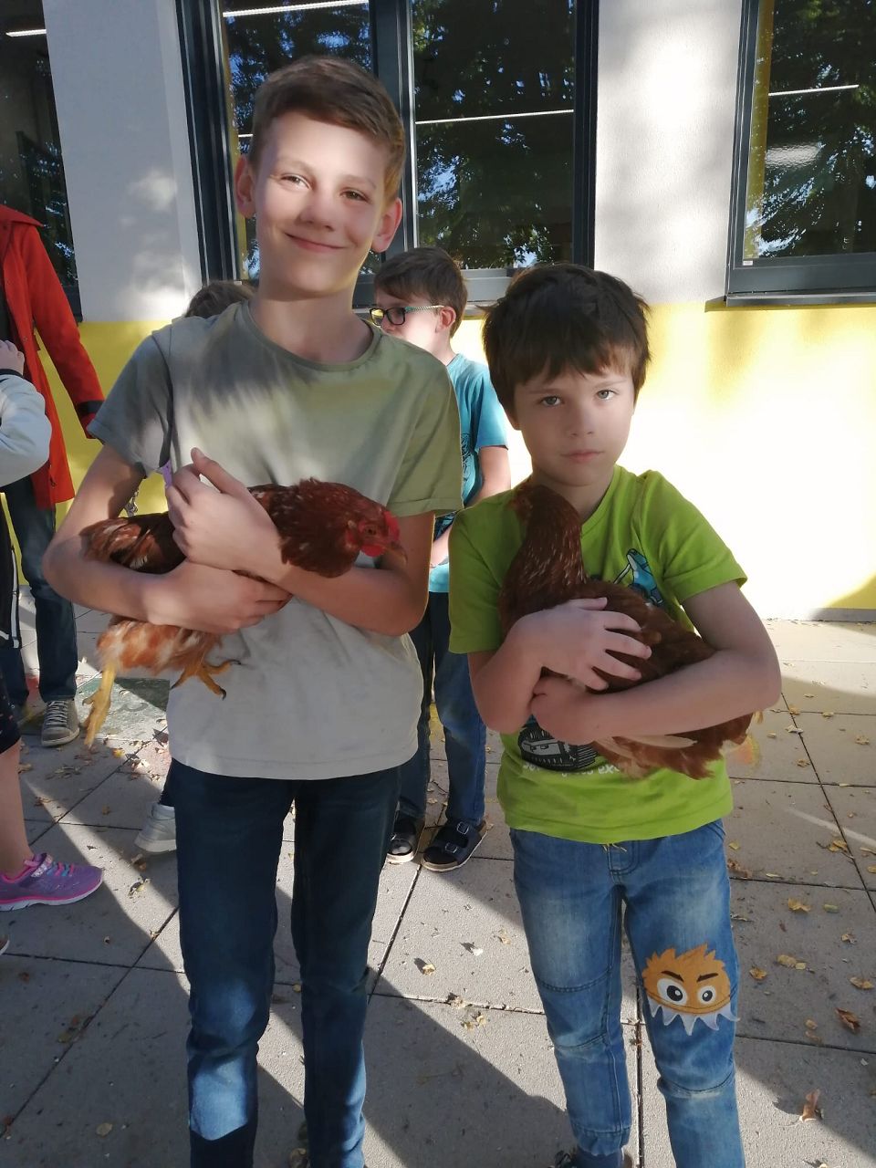 Am Donnerstag, den 5. Oktober, hatten wir anlässlich des gestrigen Welttierschutztages tierischen Besuch auf unserer Terrasse. Zwölf Eltern und Großeltern statteten uns mit Hunden, Schildkröten, Hasen, Meerschweinchen, Babykatzen und Hühnern einen Besuch ab. Besonders schön war es dabei für alle die Tiere zu streicheln, zu füttern und sogar zu halten.